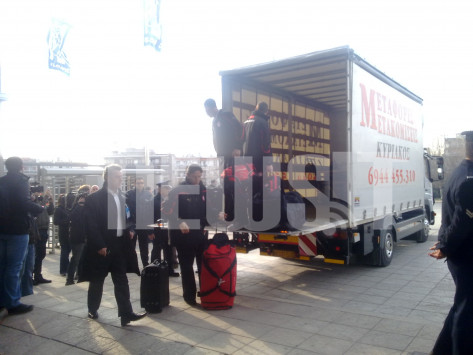 Με φορτηγό μετακομίσεων έφτασαν μέλη της αποστολής του Ολυμπιακού