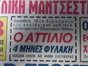 τέλος ενός αγώνα με τον Ολυμπιακό Βόλου συνελήφθη ο ''Αττίλιο'', ο