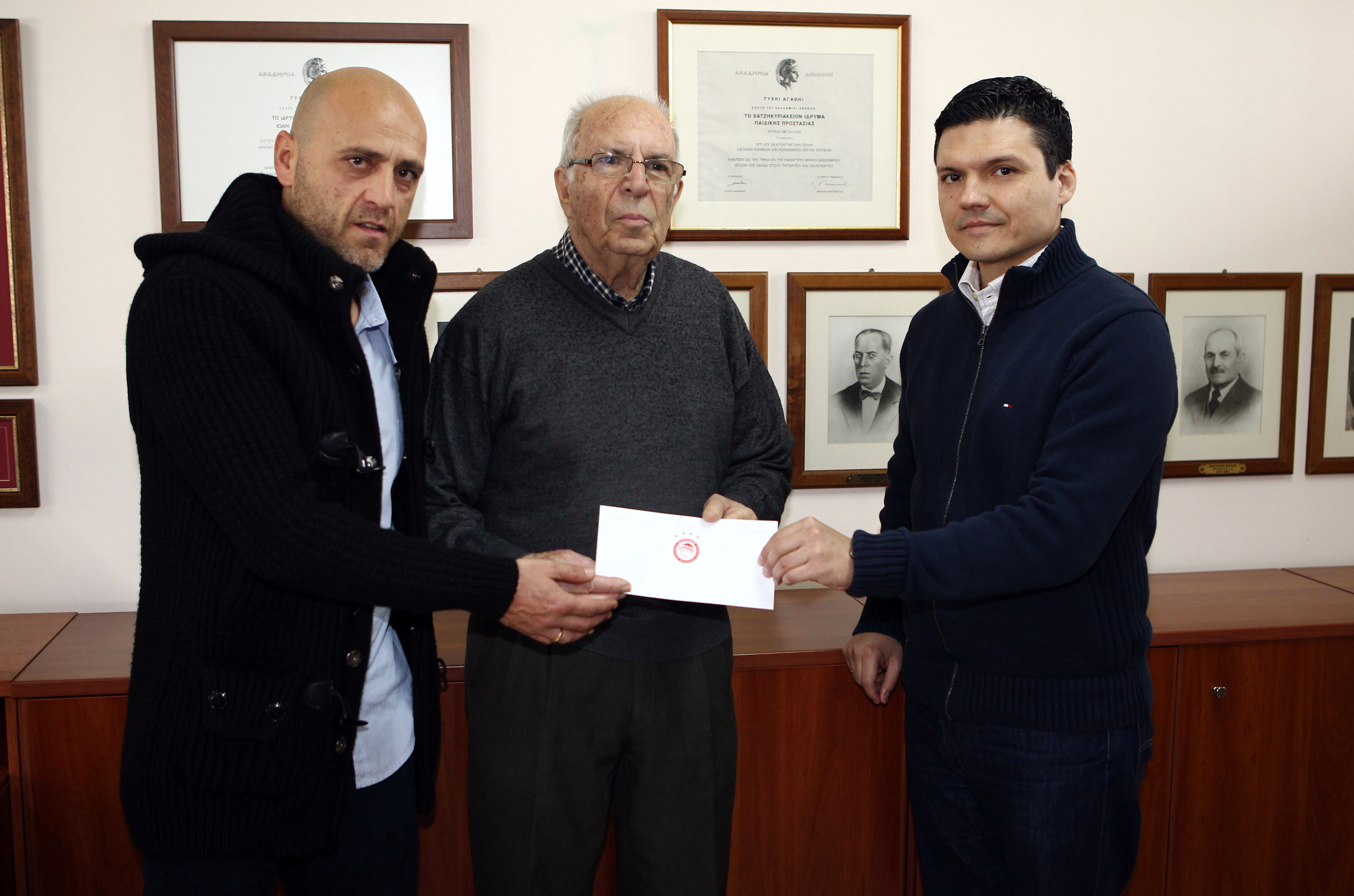 Ο Ολυμπιακός να ξέρετε δεν είναι μόνο μία ομάδα, ένας αθλητικός σύλλογος. Ο Ολυμπιακός προσφέρει καθημερινά και είναι ενεργό κομμάτι της κοινωνίας. Έχει αναπτύξει ένα έντονο κοινωνικό έργο με σκοπό να προσφέρει στην ελληνική κοινωνία με δράσεις που άλλοτε βλέπουν το φως της δημοσιότητας κι άλλοτε όχι. Πρέπει να γνωρίζετε ότι ο Ολυμπιακός τελευταία έχει προχωρήσει σε μία πολύ σημαντική συνεργασία με τη UNICEF, προκειμένου να συμβάλει για τον εμβολιασμό 50.000 παιδιών, τόσο στην Ελλάδα, όσο και στον κόσμο. Είναι αυτό που λέει ο Πρόεδρός μας, ο κ. Μαρινάκης, ότι πέρα από την Ελλάδα των δυσκολιών, υπάρχει η Ελλάδα της προσφοράς και της αλληλεγγύης και ο Ολυμπιακός είναι αναπόσπαστο κομμάτι της Ελλάδας. Γι’ αυτό κι εμείς είμαστε εδώ για να προσφέρουμε οικονομική στήριξη, προκειμένου να συνεχίσετε το έργο σας και να ξέρετε ότι είμαστε δίπλα σας».