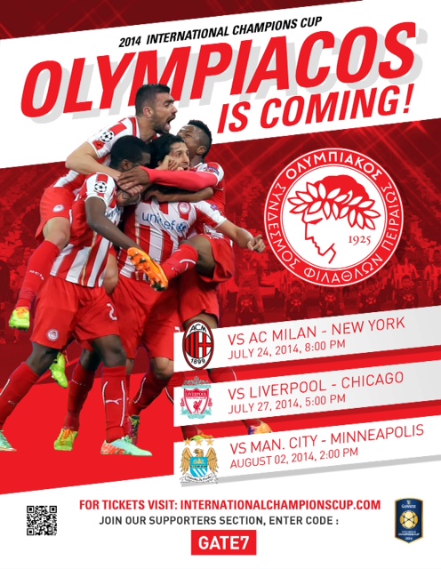 24/07/2014 * Ολυμπιακός - Μίλαν (20:00 EST - Νέα Υόρκη)