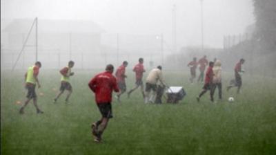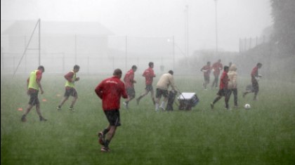 Η απογευματινή προπόνηση του Ολυμπιακού ξεκίνησε κανονικά αλλά δεν τελείωσε ποτέ. Ο καιρός δεν ήταν σύμμαχος των «ερυθρολεύκων» αφού έβρεξε «καρέκλες» και ο Ερνέστο Βαλβέρδε αναγκάστηκε να διακόψει την προπόνηση καθώς παίκτες και τεχνικό τιμ δεν έβλεπαν την …μύτη τους από τη δυνατή χαλαζόπτωση.